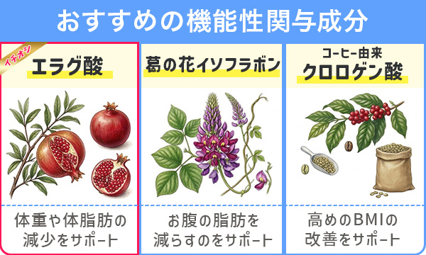 肥満気味の方の体重・体脂肪の減少をサポートする【エラグ酸】が配合されているんです!